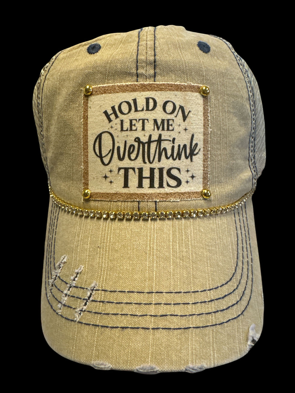 Hold On Let Me Overthink This - Distressed Bling Trucker Hat
