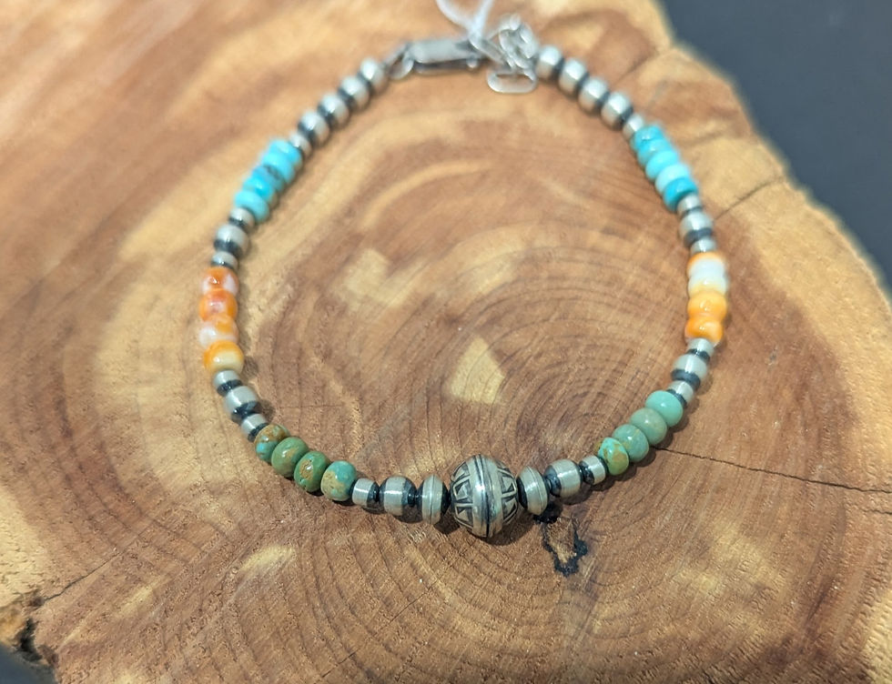 Blue/Green Turquoise/Orange Spiney Bracelet